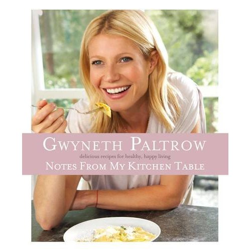 Ale od początku: Notes From My Kitchen Table to książka równie wypielęgnowana, co złociste włosy autorki, pełna zdjęć jej samej i jej rodziny. Fani GP z pewnością będą usatysfakcjonowani, także z powodu osobistych reminiscencji*, którymi poprzedza ona poszczególne działy i przepisy. Podział jest tradycyjny: z grubsza na przystawki, dania główne, dania śniadaniowe i desery. Wszystkie potrawy są szczegółowo opisane, także pod względem tego, czy są wegańskie i wegetariańskie, ile czasu zajmują, a nawet, czy są "odświętne" (dress up meal) lub jednogarnkowe. Na początku mamy również różnego rodzaju porady: co warto mieć w spiżarni/lodówce, czym zastąpić np. mąkę gryczaną, jeśli jej nie mamy (co prawda sugestia, by syrop z agawy zastąpić syropem z brązowego ryżu nie jest zbyt przydatna, zważywszy, że oba produkty są raczej niszowe), na końcu książki są też informacje, gdzie kupić pewne trudniej dostępne, amerykańskie produkty. So far, so good. Osoby, które nic o Gwyneth nie wiedzą, będą może zdziwione naciskiem na ryby, niemal całkowitą nieobecnością czerwonego mięsa (wszystkie 3 rodzaje "hamburgerów" są wegetariańskie, i jest tylko jeden przepis na mięso wołowe - na brisket, mostek na sposób żydowski) czy tym, że w wielu przepisach pominięto mąkę pszenną i biały cukier, i zastąpiono je mąką jęczmienną czy orkiszową, oraz rozmaitymi syropami, ale przypuszczam, że większość z Was zna dietetyczne inklinacje eks-makrobiotyczki Gwyneth, zatem to zdrowotne zacięcie nie jest dla Was zaskoczeniem.  Książka z całą pewnością nie podbije serc ani żołądków zatwardziałych mięsożerców, ani osób, które szukają klasyki w wydaniu...klasycznym. Jest ona owszem pełna przepisów na klasyczne potrawy: paella, kotleciki krabowe, sałatka nicejska, pavlova itp, ale często w wydaniu "dobrze wychowanym" - z mlekiem sojowym, nie krowim, bekonem z indyka (oczywiście organicznym) a nie wieprzowym itp. Nie to, że Gwyneth idzie na całość i całkowicie eliminuje kuchennych "zbirów:  jest i makaron pszenny, i śmietana kremówka, i sery. Ale - i to jest największe "ale" - osoby z bogatą kolekcją książek kucharskich, w tym takich, które zawierają sprawdzone przepisy na klasyczne potrawy kuchni europejskich i amerykańskiej, nie znajdą tu nic nowego.